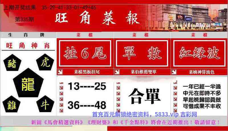 | 336期 | 《龙蛇牛鼠狗鸡》六肖大胆包10万 | 开:牛17准 |